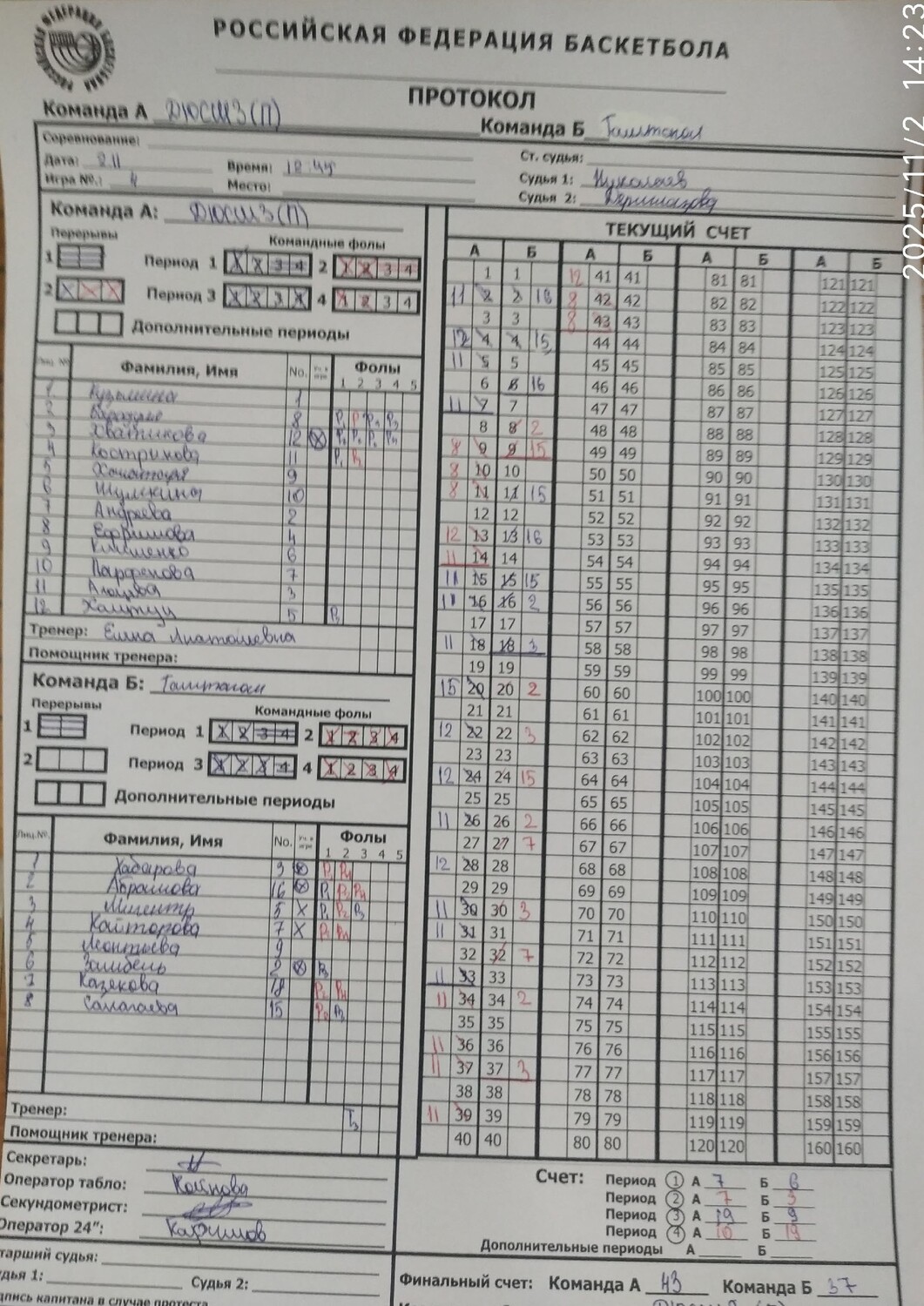 Девушки провели напряженный матч против команды ДЮСШ (3) Парфенова. Игра держала в напряжении до финального свистка, но, к сожалению, в этот раз победа осталась за соперницами – 39:46.